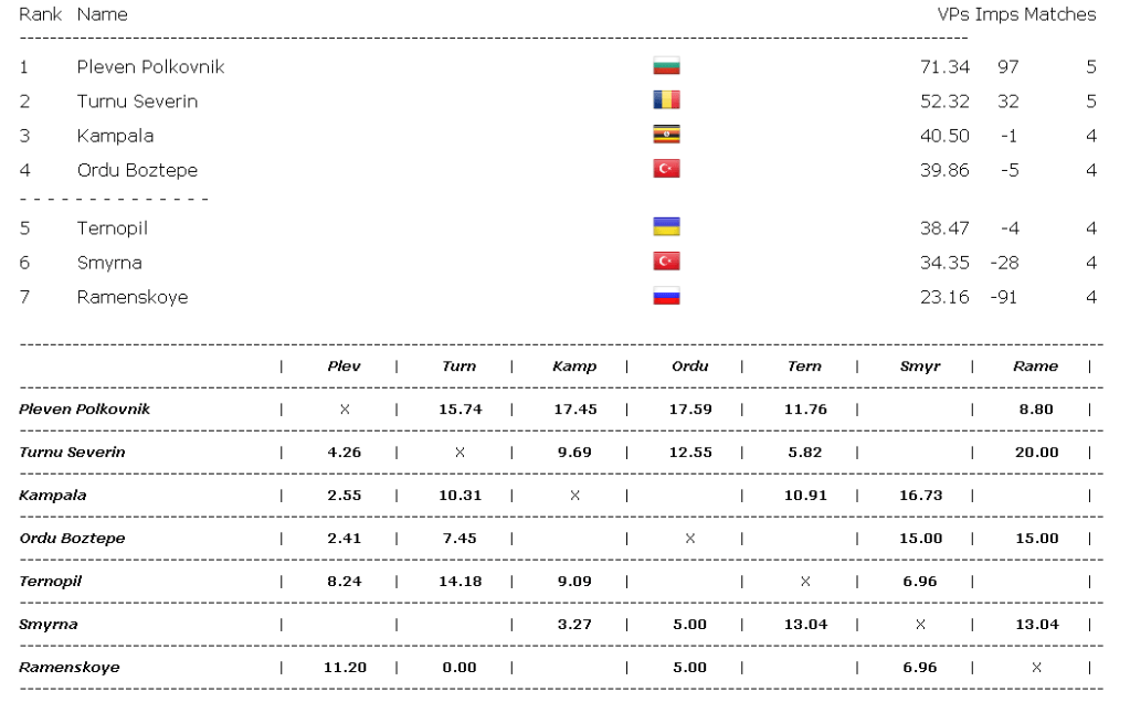Good morning, fellow team mates. Next Wednesday we are going to face the team of Ordu Boztepe (captain berrak_x). This team’s score is similar to ours and since they lost heavily to Pleven Polkovnik last Wednesday, they have a good motivation to try and beat us. Therefore, caution and good preparation is key in order to beat these folks.
