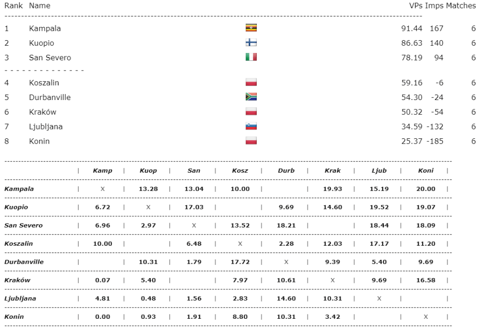 First of all, I would like to let you know that Kampala is still the leading team in our group and most likely we have already qualified to the KO stage of the ICL. You may enjoy the results below: