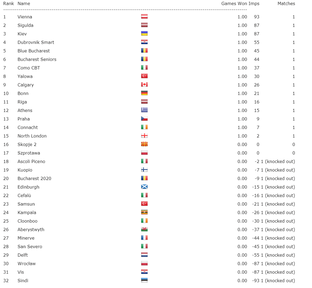 I would like to thank you all for you participation, especially in the last match that was a bit strenuous. While you may find it bitter that we only lost one match and it was in the KO phase, I think that our participation was an exquisite experience for all of us and good bridge was played. After all, it is a friendly tournament and it is more important to be nice than it is nice to be important!