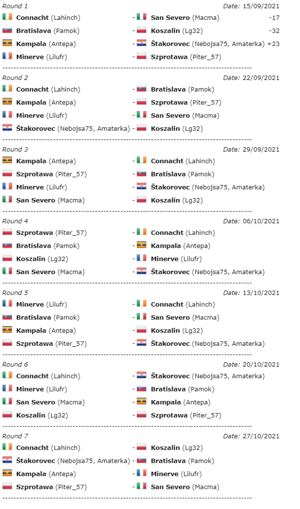 We’re facing the team of Szprotawa (captain is Piter_57) this Wednesday at the usual time. These folks seem to be playing polish club. For some unknown reason, they didn’t play last Wednesday.