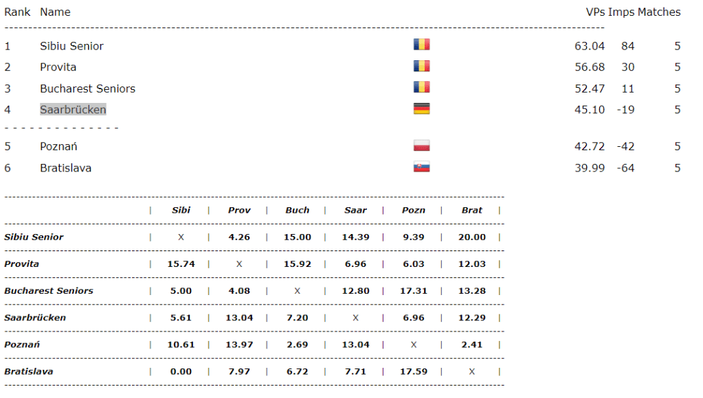 They seem to have decent roster of players : erfan 87 – Tom S / yoshka- darnim against Bratislava (won this match) and horacek- phobos / yoshka- darnim against Poznan (lost in this match). Tom S is the captain of the team. They play a natural system, with a couple of bridge conventions popular in Germany added. You may download and examine the boards played by them (lin and pdf files) in this folder that I have prepared for you.