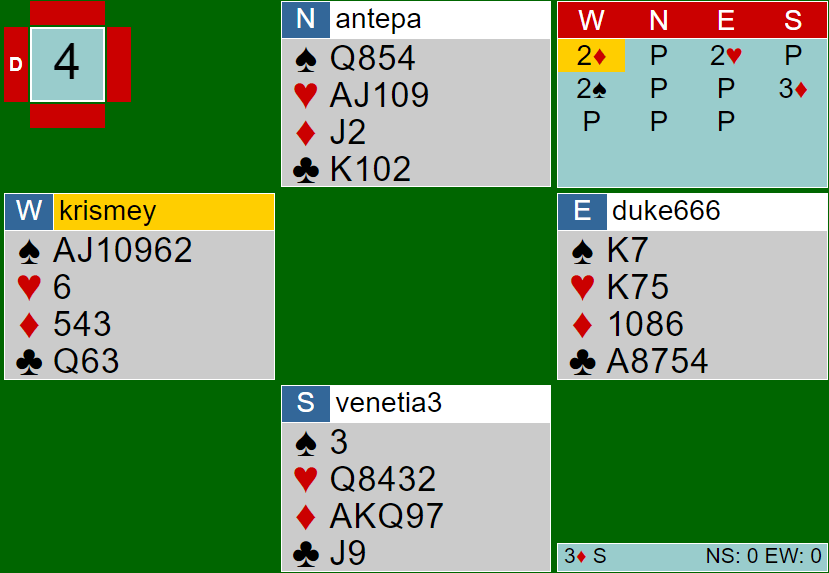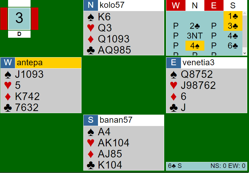 Last night all of us played and eventually we beat our opponents by a thin margin of 9 IMPs. It was a nice evening, we made our mistakes, but their team made more than us.