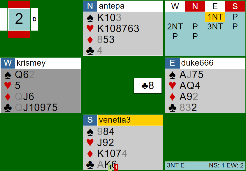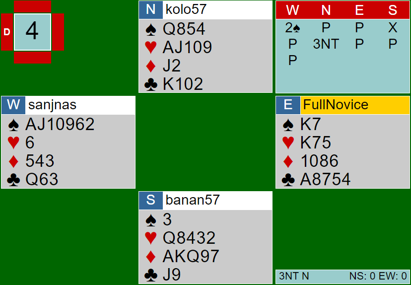 In the second half, I will stand on board 2 and board 4. Board 2 was an example of a defending issue, the 3NT bid was not makeable 100%. I believe that myself and Venetia could’ve defended better. The 4th trick was, seemingly, the issue.